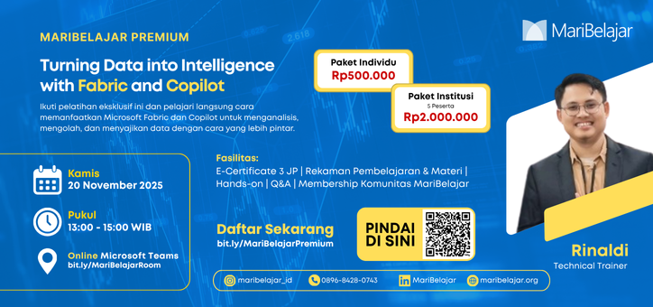 Era baru analisis data tidak lagi soal kemampuan coding semata, tapi kemampuan mengarahkan AI untuk berpikir bersama manusia. Dengan menguasai Fabric dan Copilot, kamu bisa menggabungkan data dari berbagai sumber tanpa repot integrasi manual, membuat insight hanya dengan prompt sederhana, dan mempercepat proses pengambilan keputusan bisnis berbasis data.